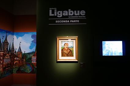 Infatti, accanto agli oltre 100 capolavori– molti dei quali inediti assoluti quali Lince nella foresta (1957-1958), venti disegni a matita su carta da disegno (1961-1962) e diverse opere di grande qualità non esposte da tantissimi anni come Circo all’aperto (1955-1956), Castelli svizzeri (1958-1959), Crocifissione (1955-1956) e un rarissimo pastello a cera, matita e china su carta Leopardo e antilope e indigeno (1953-1954) – a definire la figura di Ligabue anche uno stralcio del film “Volevo nascondermi” di Giorgio Diritti con la magistrale interpretazione di Elio Germano, uscito nel 2020 dopo il memorabile sceneggiato RAI di Salvatore Nocita del 1977 con Flavio Bucci.