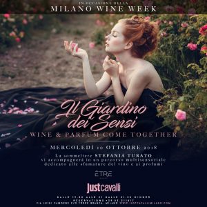 Il 10 Ottobre, dalle ore 19,30, nell’elegante cornice del Just Cavalli di viale Camoens a Milano, in occasione del debutto della Milano Wine Week, verrà organizzato “Il Giardino dei Sensi”, prima esperienza multisensoriale tra fragranze, food e vino, con la Sommelliere Stefania Turato, wine expert, che, in collaborazione con Etre Milano, tempio delle fragranze d’autore e il suo direttore creativo Matteo Perin, accompagnerà il pubblico in questo percorso degustativo, tra vini e fragranze Perris Montecarlo.