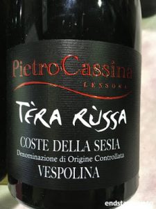 Tra i rossi invece ricordiamo la particolare Schiava di Lieselhof in Alto Adige, gli autoctoni di montagna Fumin, Cornalin e il Blend Torrette con prevalenza di Petit Rouge dell’Aostana Grosjean, il Refosco del Peduncolo Rosso e lo Schioppettino di Flaibani di Cividale del Friuli (Ud), il Buttafuoco dell’Oltrepo Pavese di Marco Vercesi di Montù Beccaria (Pv), il Rosso dei Pianori da uve Barbera, Croatina e Pinot Nero di San Michele ai Pianoni di Montecalvo Versiggia (Pv), il Dolcetto e la Barbera d’Asti di Ugo Balocco di San Marzano Oliveto (At), il Primitivo di Manduria della Cantina Nistri di Faggiano (Ta), l’Aglianico Taurasi della Cantina Irpina Antico Castello, il Sangiovese “Sesterzo” dell’azienda Agricola Poggio Grande in Val d’Orcia (Si) ed infine i Nebbioli Chiavennasca di La Perla di Marco Triacca e di Arpepe, nel cuore della produzione vitivinicola valtellinese.