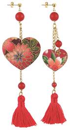 Orecchini asimmetrici con nappa in seta realizzati in seta di antichi kimono giapponese, argento galvanizzato oro e pietre naturali. Interamente Made in Italy.