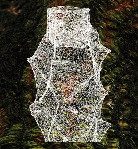 Su una delle pareti invece, una videoanimazione, creata estrapolando elementi dal processo progettuale 3D, riproduce un immaginario paesaggio naturale, inabitato da forme organiche che ci trasportano in mondi distanti e distopici.