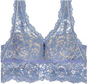 Reggiseno top bra scollato in pizzo con coppe preformate e ferretto. Modello caratterizzato da balza in pizzo sotto al seno. Le spalline sono regolabili.