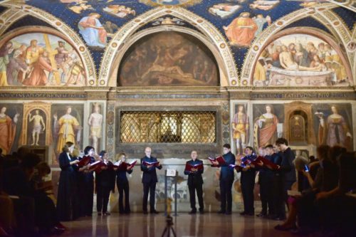 Durante le due serate, il programma sarà ulteriormente arricchito dall’esecuzione di brani del ‘900 e contemporanei per sole voci femminili a cappella eseguiti dall’Ensemble Virgo Vox: da M. Duruflé a H. Badings, da E. Ugalde a E. Ešenvalds. Testi e musiche sacre o dall’alto valore intimistico che nella lontananza dei secoli rispetto al periodo barocco monteverdiano, creeranno un contrasto di suoni e ambientazioni che lasceranno nel pubblico una doppia emozione musicale: l’antico vicino al contemporaneo, nei loro punti di contatto e nelle loro differenze.