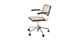 Il modello è una versione girevole della celebre cantilever S 64 di Marcel Breuer, dove il telaio in tubolare d’acciaio, gli elementi della seduta e quelli dello schienale sono montati su un basamento girevole in alluminio a cinque razze.