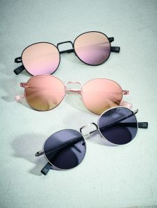 Gli occhiali da sole montano lenti di alta qualità, in parte polarizzate, proposte nella versione casual monocromatica, in quella più cool sfumata, così come nella variante specchiata, metallica e brillante. Portati con le catenelle abbinate, diventano unici come la personalità di chi li indossa.
