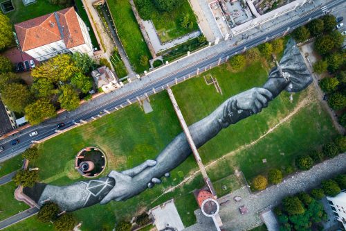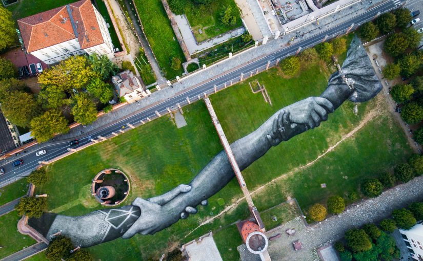 L’arte non solo accende un riflettore internazionale sul nostro territorio, raccontando la bellezza della nostra città, ma ci regala la possibilità di riflettere sui temi che accompagna. Saype è un giovane artista che ci ricorda che i giovani sono il futuro ma anche il presente, e la sua visione della società, più giusta, equa, sostenibile e senza confini ci restituisce la speranza di poterla immaginare, e quindi poterla realizzare. Un’opera d’arte quella di Saype che nella sua bellezza si fa portatrice di una visione del futuro, al di là dei muri, anche quelli invisibili, mani che si stringono e che uniscono al posto di dividere, ricordandoci che siamo tutte e tutti connessi e interdipendenti. Durante questo periodo straordinario e terribile abbiamo riscoperto il valore della comunità e della solidarietà. Da qui occorre ripartire per gettare le fondamenta per una società migliore.