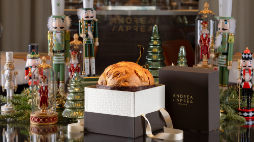 Andrea Aprea, chef dell’omonimo ristorante due stelle Michelin a Milano, propone due versioni del suo panettone per celebrare le feste con gusto e raffinatezza. Il panettone tradizionale con canditi è un omaggio al dolce iconico di Milano, città che lo chef ama profondamente. A questo si aggiunge il panettone alle albicocche del Vesuvio, un viaggio attraverso i sapori autentici e vibranti di Napoli, città natale di Andrea Aprea, che rievoca ricordi e profumi della sua terra. Il packaging è realizzato interamente con carta di caffè riciclata e impreziosito da un design elegante e raffinato, dimostrando l’attenzione dello chef alla sostenibilità e alla ricerca di un’estetica dalle proporzioni pure.